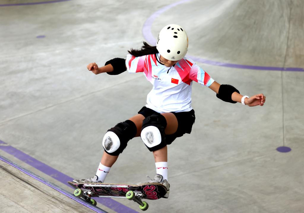 2026年亚洲滑板锦标赛女子碗池决赛现场。新华社发(姚永亮 摄)